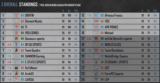 3¿ù 5ÀÏ(¸ñ)ºÎÅÍ 7ÀÏ(Åä)±îÁö ÁøÇàµÈ ±×·ì ½ºÅ×ÀÌÁö 2ÁÖ Â÷ °æ±â °á°ú, GRIFFINÀÌ ¸¶Áö¸· ³¯ 59Æ÷ÀÎÆ®¸¦ ì±â¸ç ´©Àû 109 ų 171Æ÷ÀÎÆ®·Î 1À§¿¡ ¿Ã¶ú´Ù. 6ÀÏ(±Ý) °æ±â¿¡¼­ µ¥ÀÌ ¿ì½ÂÀ» ÇÑ Element MysticÀº ÃÖÁ¾ 2À§¸¦ Â÷Áö, ²ÙÁØÈ÷ »óÀ§±ÇÀ» ±â·ÏÇÑ T1, VRLU GHIBLI, Danawa e-sports´Â 3, 4, 5À§·Î ±× µÚ¸¦ À̾ú´Ù.