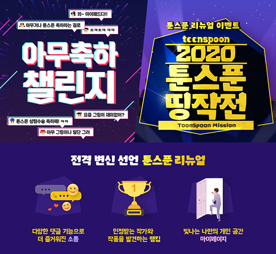 ½º¸¶ÀϰÔÀÌÆ®ÀÇ ÄÜÅÙÃ÷ âÀÛ Ç÷§Æû ¡®Å÷½ºÇ¬(TOONSPOON)¡¯ÀÌ Å÷½ºÇ¬ ¼ºñ½º ÆäÀÌÁö¸¦ ´ë´ëÀûÀ¸·Î ¸®´º¾óÇѵ¥ À̾î 3¿ù 30ÀÏ ±îÁö Ưº° °ø¸ðÀüÀ» ÁøÇàÇÑ´Ù°í 9ÀÏ(¿ù) ¹àÇû´Ù.