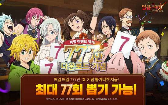 ³Ý¸¶ºíÀº ¸ð¹ÙÀÏ RPG 'Àϰö °³ÀÇ ´ëÁË: GRAND CROSS(ÀÌÇÏ Àϰö °³ÀÇ ´ëÁË: ±×·£µå Å©·Î½º, °³¹ß»ç ÆÛ´ÏÆÄ¿ì)'¿¡ ±Û·Î¹ú 777¸¸ ´Ù¿î·Îµå¸¦ ±â³äÇÑ À̺¥Æ®¸¦ ½Ç½ÃÇÑ´Ù°í 19ÀÏ ¹àÇû´Ù.