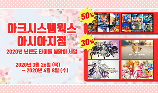 ¾ÆÅ©½Ã½ºÅÛ¿÷½º ¾Æ½Ã¾ÆÁöÁ¡Àº ¡¸»çÀÌÄì Ä÷º¼Ç Vol.2¡¹, ¡¸¸®Æ² ÇÁ·»Áî -DOGS&CATS-¡¹, ¡¸Ä®¸®±¼¶ó ¿À¹öµµÁ µî Nintendo Switch¢âÀ¸·Î Ãâ½ÃµÈ ŸÀÌÆ² 6Á¾¿¡ ´ëÇÑ º½¸ÂÀÌ ±â³ä ¼¼ÀÏÀ» ³»ÀÏ 3¿ù 26ÀÏ(¸ñ)ºÎÅÍ 4¿ù 8ÀÏ(¼ö)±îÁö 2ÁÖ°£ ÁøÇàÇÑ´Ù°í ¹ßÇ¥Çß´Ù.