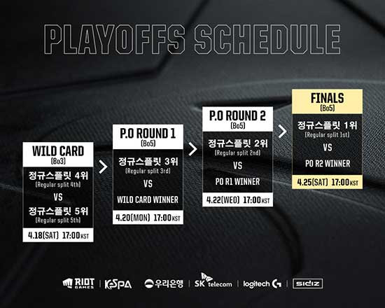 2020 LCK ½ºÇÁ¸µ Ç÷¹ÀÌ¿ÀÇÁ¿¡´Â ¿À´Â 16ÀÏ Á¾·áµÇ´Â Á¤±Ô ¸®±× »óÀ§ 5ÆÀÀÌ ÁøÃâÇÏ°Ô µÇ¸ç, 4¿ù 18ÀÏ Åä¿äÀÏ 5½Ã ¿ÍÀϵåÄ«µåÀüÀ¸·Î ½ÃÀÛÇØ 4¿ù 25ÀÏ °á½ÂÀüÀ¸·Î ¸¶¹«¸®µÈ´Ù.