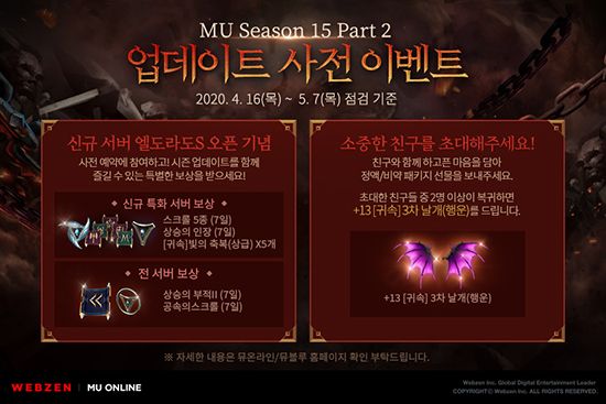 4¿ù 28ÀÏ(¸ñ)¿¡ Àû¿ëµÇ´Â ¡®¹Â ¿Â¶óÀΡ¯ ¡®½ÃÁð 15-2¡¯ ¾÷µ¥ÀÌÆ®¿¡´Â ½Å±Ô ¼¹ö ¡®¿¤µµ¶óµµS¡¯¿Í ½Å±Ô »ç³ÉÅÍ ¡®È«¿¬ÀÇ ÀÌÄ«·ç½º¡¯°¡ Ãß°¡µÉ ¿¹Á¤ÀÌ´Ù.