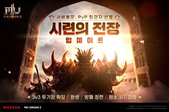 À¥Á¨ÀÌ ¸ð¹ÙÀÏ MMORPG '¹Â ¿À¸®Áø2'¿¡ Àü ¼¹ö¿¡¼ PVP ÃÖ°ÀÚ¸¦ °¡¸®´Â '½Ã·ÃÀÇ ÀüÀå'À» ¾÷µ¥ÀÌÆ®ÇÑ´Ù.