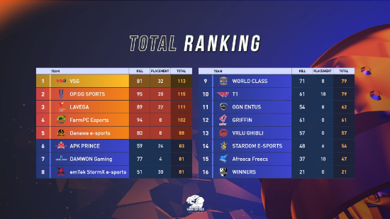 5¿ù 8ÀÏ(±Ý)ºÎÅÍ 9ÀÏ(Åä)±îÁö ÁøÇàµÈ BSC 2020 ½ÃÁð 2 °á¼± °æ±â °á°ú, VSG°¡ ų Æ÷ÀÎÆ® 81Á¡, ¼øÀ§ Æ÷ÀÎÆ® 32Á¡À¸·Î ÃÖÁ¾ 1À§¿¡ µî±ØÇß´Ù.