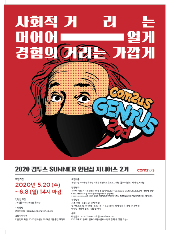 ÄÄÅõ½ºÀÇ ÀÎÅÏ½Ê ÇÁ·Î±×·¥¿¡ °ü½ÉÀÌ ÀÖ´Â ´ëÇÐ Á¹¾÷ÀÚ ¹× Á¹¾÷ ¿¹Á¤ÀÚ¶ó¸é ´©±¸³ª Âü¿© °¡´ÉÇϸç, ¿À´Â 6¿ù 8ÀÏ(¿ù)±îÁö ÄÄÅõ½º ä¿ë ȨÆäÀÌÁö(com2us.recruiter.co.kr)¸¦ ÅëÇØ Áö¿øÇÒ ¼ö ÀÖ´Ù.