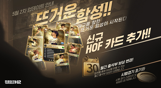 ¿£¾¾¼ÒÇÁÆ®(¿£¾¾(NC))ÀÇ ¸ð¹ÙÀÏ ¾ß±¸ ¸Å´ÏÁö¸ÕÆ® °ÔÀÓ ¡®ÇÁ·Î¾ß±¸ H2¡¯°¡ ½Å±Ô ¡®HOF(Hall of Fame, ¸í¿¹ÀÇ Àü´ç)¡¯ µî±Þ ¸¶¹«¸® ¼±¼ö¸¦ Ãß°¡ÇÏ´Â µî ÄÜÅÙÃ÷ ¾÷µ¥ÀÌÆ®¸¦ ÁøÇàÇß´Ù.