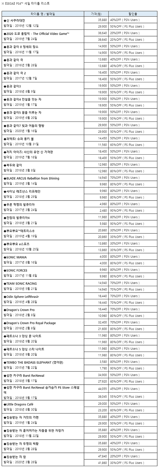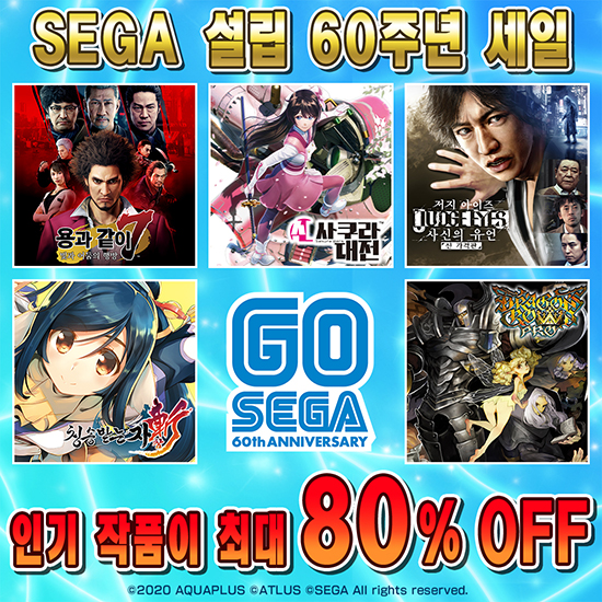 ¼¼°¡´Â 2020³â 6¿ù 3ÀÏ¿¡ ¸ÂÀÌÇÏ´Â ¼³¸³ 60ÁÖ³âÀ» ±â³äÇÏ¿© ¿À´ÃºÎÅÍ 6¿ù 16ÀÏ (È)±îÁöÀÇ ±â°£, PlayStation¢âStore ¹× Nintendo eShop¿¡¼ ÆÇ¸Å ÁßÀÎ ÀϺΠPlayStation¢ç4 / Nintendo Switch¢â Àü¿ë ŸÀÌÆ²À» Ưº° °¡°ÝÀ¸·Î ÆÇ¸ÅÇÏ´Â ¼¼ÀÏÀ» °³ÃÖÇÑ´Ù. ÀÌ ¼¼ÀÏÀº SEGA AsiaÀÇ ¾ö¼±µÈ ÀαâÀÛ°ú ¸íÀÛÀ» ÃÖ°íÀÇ ÇÒÀÎ °¡°ÝÀ¸·Î ±¸¸ÅÇÒ ¼ö ÀÖ´Â ÀýÈ£ÀÇ ±âȸÀÌ´Ù.