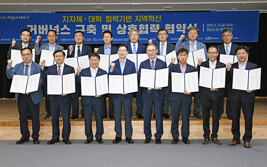 NHNÀÌ °æ³²µµ°¡ ÁÖ°üÇÏ´Â ¡®ÁöÀÚü-´ëÇÐ Çù·Â±â¹Ý Áö¿ªÇõ½Å »ç¾÷¡¯ÀÇ ¼º°øÀû ÃßÁøÀ» À§ÇÑ ¾÷¹« Çù¾à½Ä¿¡ Âü¿©, ¾çÇØ°¢¼¸¦ ü°áÇß´Ù.