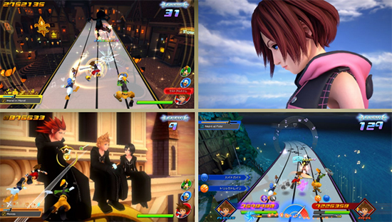 º» ÀÛǰ¿¡¼´Â Ç÷¹ÀÌ °¡´ÉÇÑ ʻKINGDOM HEARTSʼ ½Ã¸®ÁîÀÇ Ä³¸¯ÅͰ¡ ´Ù¼ö µîÀåÇÑ´Ù. ½ºÅ×ÀÌÁö¿¡ µû¶ó µðÁî´Ï ij¸¯ÅͰ¡ °Ô½ºÆ®·Î µîÀåÇÏ¿© ÈûÀ» ºô·ÁÁÖ´Â °æ¿ìµµ ÀÖ´Ù. ʻKINGDOM HEARTSʼ ½Ã¸®ÁîÀÇ À½¾ÇÀº ¹°·Ð µðÁî´Ï À½¾Ç±îÁö 140 °î ÀÌ»óÀÇ È£È·Î¿î ¼ö·Ï°îÀ» µéÀ» ¼ö ÀÖÀ¸¸ç, Ãß¾ï ¼ÓÀÇ ±× °îÀ¸·Î ¸®µë ¾×¼ÇÀ» Áñ±æ ¼ö ÀÖ´Ù.
