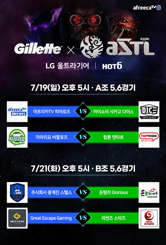 ¾ÆÇÁ¸®Ä«TV´Â ¿À´Â 19ÀÏ(ÀÏ)°ú 21ÀÏ(È) ¾çÀϰ£ ¼¿ï Àá½Ç ·Ôµ¥¿ùµå ³» 'ÇֽĽº ¾ÆÇÁ¸®Ä« Äݷμ¼¿ò' °æ±âÀå¿¡¼ '½ºÅ¸Å©·¡ÇÁÆ® : ¸®¸¶½ºÅÍ(StarCraft¢ç: Remastered)'·Î ÁøÇàµÇ´Â 'Áú·¹Æ® ¾ÆÇÁ¸®Ä«TV ½ºÅ¸Å©·¡ÇÁÆ® ÆÀ ¸®±×(ÀÌÇÏ Áú·¹Æ® ASTL) ½ÃÁð1'ÀÇ 4ÁÖÂ÷¸¦ ÁøÇàÇÑ´Ù°í ¹àÇû´Ù. À̹ø 4ÁÖÂ÷ °æ±â¸¦ ¸¶Áö¸·À¸·Î Á¶º° Ç®¸®±×°¡ Á¾·áµÇ¸ç, 4° ½Ì±Û Åä³Ê¸ÕÆ®¿¡ ÁøÃâÇÒ 4°³ ÆÀÀÌ °áÁ¤µÈ´Ù.