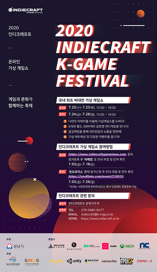 ¼º³²½Ã°¡ ÁÖÃÖÇÏ°í ¼º³²»ê¾÷ÁøÈï¿ø°ú Çѱ¹¸ð¹ÙÀϰÔÀÓÇùȸ°¡ °øµ¿ÁÖ°üÇÏ´Â [2020 ÀεðÅ©·¡ÇÁÆ® ¿Â¶óÀÎ °¡»ó°ÔÀÓ¼î]´Â ¡®°ÔÀÓÀº ¹®È´Ù¡¯¶ó´Â ½½·Î°Ç ¾Æ·¡ ±¹³»¿Ü ¿ì¼ö Àεð°ÔÀÓÀ» ¹ß±¼Çϰí, °ÇÀüÇÑ °ÔÀÓ¹®È Á¶¼º ¹Ð °ÔÀÓ»ê¾÷ÀÇ »õ·Î¿î Çõ½Å ¿±â¸¦ ÀçÁ¡È ÇÏ¿© °³¹ßÀÚ-À¯Àú-Ç÷§ÆûÀÌ ¼·Î »ó»ýÇÏ´Â »ýŰ踦 Á¶¼ºÇϱâ À§ÇØ ÃßÁøÇϰí ÀÖ´Â Çà»ç´Ù. ƯÈ÷ Äڷγª19·Î ÀÎÇØ Àü ¼¼°è°¡ ħüµÇ¾î ÀÖ´Â Áö±Ý, ´ëÇѹα¹ °ÔÀÓ»ê¾÷ÀÇ Ç®»Ñ¸®ÀÌÀÚ Ç㸮ÀÎ ¡®Áß¼Ò Àεð°ÔÀÓ¡¯À¸·Î ±Øº¹ÇϰíÀÚ ÇÏ´Â Å« Àǹ̸¦ ´ã°í ÀÖ´Ù.
