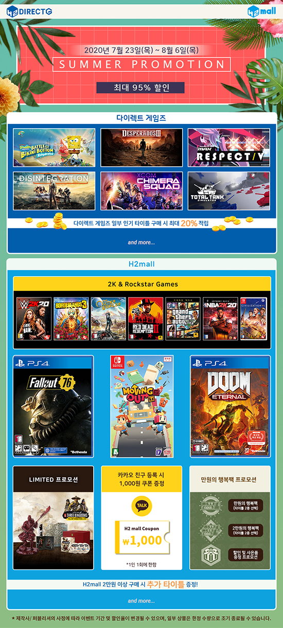 ´ÙÀÌ·ºÆ® °ÔÀÓÁî¿Í H2¸ô¿¡¼ µ¿½Ã¿¡ ÁøÇàµÇ´Â À̹ø ÇÁ·Î¸ð¼ÇÀº 7¿ù 23ÀÏ ¿ÀÈÄ 2½ÃºÎÅÍ 8¿ù 6ÀÏ ¿ÀÈÄ 2½Ã±îÁö ÁøÇàµÈ´Ù. ÀÌ ±â°£ µ¿¾È ½ÅÀÛ ¹× Àα⠰ÔÀÓÀ» ÃÖ´ë 95% ÇÒÀÎµÈ °¡°Ý¿¡ ±¸¸ÅÇÒ ¼ö ÀÖÀ¸¸ç, Ãß°¡ »çÀºÇ°ÀÌ ÁõÁ¤µÇ´Â À̺¥Æ®µµ ÇÔ²² ÁøÇàµÈ´Ù.
