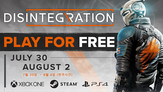 ½Ã¾ÖƲ¿¡ ÀÖ´Â Àεð °ÔÀÓ ½ºÆ©µð¿ÀÀÎ Private Division°ú V1 Interactive°¡ ¸¸µç À帣¸¦ ÆÄ±«ÇÏ´Â SF 1ÀÎĪ ½´ÆÃ °ÔÀÓDisintegration(µð½ºÀÎÅ×±×·¹À̼Ç)À» À̹ø ÁÖ¸» µ¿¾È PC, PlayStation 4 ¹× Xbox One¿¡¼ ¹«·á·Î °ø°³ ÇÑ´Ù.