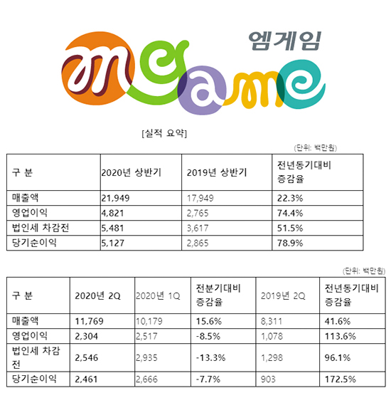 [¿¥°ÔÀÓ] 2020³â 2ºÐ±â ½ÇÀû ¹ßÇ¥ '¸ÅÃâ 118¾ï, ¿µ¾÷ÀÌÀÍ 48¾ï' |