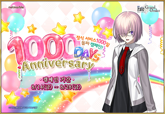 ³Ý¸¶ºíÀº ¸ð¹ÙÀÏ RPG(¿ªÇÒ¼öÇà°ÔÀÓ) 'ÆäÀÌÆ®/±×·£µå ¿À´õ(Fate/Grand Order)' ¼ºñ½º 1,000ÀÏÀ» ±â³äÇÑ Ä·ÆäÀÎÀ» ¿À´Â 30ÀϱîÁö ½Ç½ÃÇÑ´Ù°í 14ÀÏ ¹àÇû´Ù.