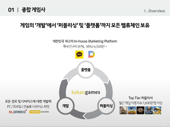 ³²±ÃÈÆ ´ëÇ¥´Â À̳¯ °£´ãȸ¿¡¼ ¡°Ä«Ä«¿À°ÔÀÓÁî´Â ±¹³» °ÔÀÓ»ç·Î ¡®À¯ÀÏ¡¯ÇÏ°Ô ¸ð¹ÙÀÏ ¹× PC ¿Â¶óÀÎÀ» ¾Æ¿ì¸£´Â ¸·°ÇÑ Ç÷§ÆûÀ» º¸À¯Çϰí ÀÖÀ¸¸ç, ÆÛºí¸®½Ì, °³¹ß·ÂÀ» Æ÷ÇÔÇÑ ¹ë·ùüÀÎÀ» ¿Ï¼ºÇϸç źźÇÑ °ÔÀÓ ±â¾÷À¸·Î ¼ºÀåÇØ¿Ô´Ù¡±¸ç, ¡°½Å»ç¾÷ À°¼ºÀ» ÅëÇØ Àå±âÀûÀÎ ¼ºÀå µ¿·ÂÀ» È®º¸Çذ¡°í ÀÖÀ¸¸ç, Àû±ØÀûÀÎ ÇØ¿Ü ½ÃÀå °ø·«À» ÅëÇØ ±¹³» ´ëÇ¥ ±Û·Î¹ú ±â¾÷À¸·Î µµ¾àÇØ ³ª°¥ ¿¹Á¤¡±À̶ó°í ¸»Çß´Ù.