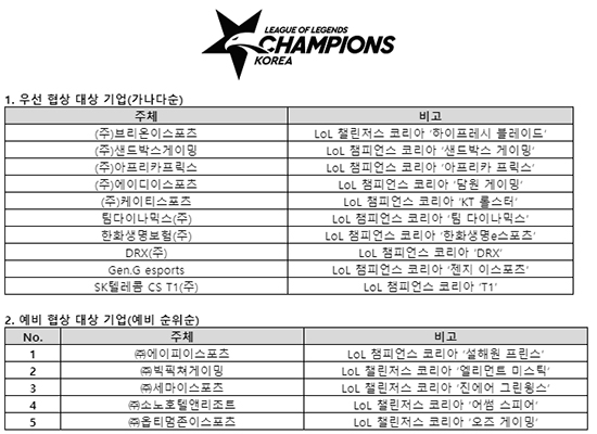 ¶óÀ̾ù °ÔÀÓÁî´Â Áö³ 6¿ù 19ÀÏ ÃÑ 21°³ ±â¾÷ÀÇ LCK ÇÁ·£Â÷ÀÌÁî Âü°¡ Áö¿øÀ» ¸¶°¨ÇÑ µÚ 1Â÷¿Í 2Â÷ ½É»ç¿¡ °ÉÃÄ ¿ì¼± Çù»ó ´ë»ó 10°³ ±â¾÷°ú ¿¹ºñ Çù»ó ´ë»ó 5°³ ±â¾÷À» ¼±Á¤Çß´Ù.