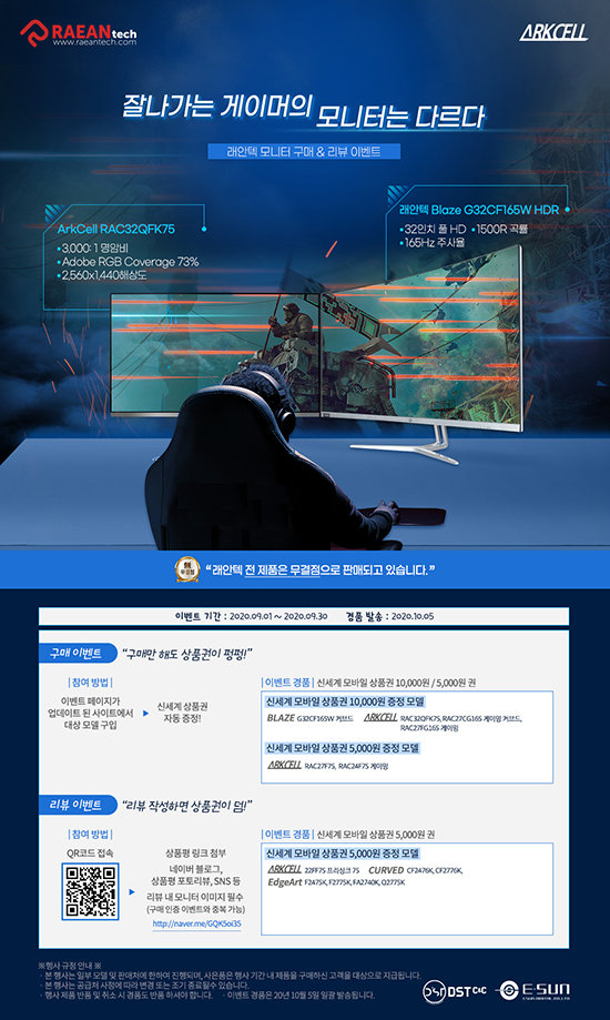 À̹ø ÇÁ·Î¸ð¼ÇÀº ·¡¾ÈÅØ ¾ÆÅ©¼¿ °ÔÀÌ¹Ö ¸ð´ÏÅÍ °ø½Ä ¼öÀÔ»ç À̼±µðÁöÅ»°ú µð¿¡½ºÆ¼¾¾¾Ø¾¾(DSTC&C)°¡ 9¿ù 1ÀϺÎÅÍ 9¿ù 30ÀϱîÁö ÇÔ²² ÁøÇàÇÑ´Ù. ÇÁ·Î¸ð¼Ç ´ë»ó ¸ð´ÏÅÍ ±¸¸ÅÀÚ ¹× ¸®ºä ÀÛ¼ºÀÚ Àü¿ø¿¡°Ô´Â ´ë»ó ¸ðµ¨¿¡ µû¶ó ½Å¼¼°è ¸ð¹ÙÀÏ »óǰ±Ç 10,000¿ø±Ç°ú 5,000¿ø±ÇÀ» ÁõÁ¤ÇÑ´Ù.