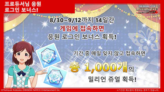 ¹Ý´ÙÀÌ ³²ÄÚ ¿£ÅÍÅ×ÀÎ¸ÕÆ®´Â App Store ¡¤ Google Play¢â¿ë °ÔÀÓ ¡°¾ÆÀ̵¹ ¸¶½ºÅÍ ¹Ð¸®¾ð ¶óÀ̺ê! ½Ã¾îÅÍ µ¥ÀÌÁî(ÀÌÇÏ "¹Ð¸®½ÃŸ") "ÀÇ Çѱ¹ÆÇ ¼ºñ½º 1ÁÖ³âÀ» ¸Â¾Æ ¾÷µ¥ÀÌÆ®¿Í ÇÔ²² À̸¦ ±â³äÇÑ ¡°¸ÅÀÏ 10 ¿¬¼Ó »Ì±â ¹«·á Ä·ÆäÀΡ±°ú È£È ¼±¹°À» ÁõÁ¤ÇÏ´Â À̺¥Æ®¸¦ ÁøÇàÇÑ´Ù.