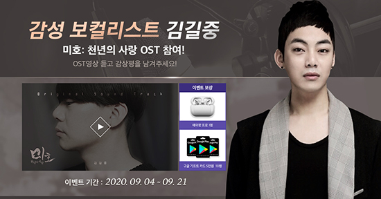 ÇÑâ ÀÚȸ»çÀÎ ¿¡ÀÌÄ¡¾¾¾ÆÀÌ¿ø ÁÖ½Äȸ»ç¿Í ÇÏ·ç¿£ÅÍÅ×ÀÎ¸ÕÆ®°¡ °øµ¿ ÆÛºí¸®½ÌÇÏ´Â °¨¼º MMORPG ¡®¹ÌÈ£: õ³âÀÇ »ç¶û¡¯ Main OST¸¦ Àü°Ý °ø°³Çϸç, À̹ø ¸ÞÀÎ Å׸¶ OST¿¡ °¡¼ö ±è±æÁßÀÌ Âü¿©ÇØ ¹¬Á÷ÇÏ¸é¼ Ç㽺ŰÇÑ À½»öÀ¸·Î »ö´Ù¸¥ OST°¡ µÇ¾ú´Ù°í °ü°èÀÚ°¡ ±ÝÀÏ ¹àÇû´Ù.