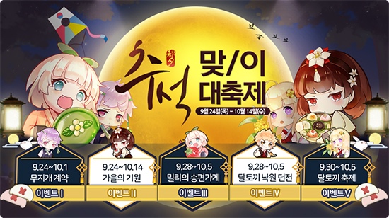 ±×¶óºñƼÀÇ ´ëÇ¥ PC ¿Â¶óÀΰÔÀÓ ¡®¶ó±×³ª·ÎÅ© ¿Â¶óÀΡ¯Àº 10¿ù 7ÀÏ Á¡°Ë Àü±îÁö ¡®Ãß¼®¸ÂÀÌ »ç³É ÁýÁß À̺¥Æ®¡¯¸¦ ÁøÇà ÁßÀÌ´Ù. À̺¥Æ® ±â°£ µ¿¾È ÆòÀÏ¿¡´Â ȹµæ °æÇèÄ¡°¡ 30% »ó½ÂÇϸç ÁÖ¸»¿¡´Â ±âÁ¸¿¡ ÁøÇà ÁßÀÎ °æÇèÄ¡ 60% Áõ°¡ À̺¥Æ® ¿Ü¿¡ Ãß°¡·Î µå·Ó·üÀÌ 30% Áõ°¡ÇÑ´Ù. 9¿ù 29ÀϺÎÅÍ 10¿ù 6ÀϱîÁö´Â °ÔÀÓ Á¢¼Ó ½Ã ȸº¹ ¾ÆÀÌÅÛ ¼ÛÆíµµ ¸ÅÀÏ 30°³¾¿ Áö±ÞÇÑ´Ù. ¶ÇÇÑ ¡®¶ó±×³ª·ÎÅ© Á¦·Î¡¯´Â 9¿ù 29ÀÏ ¿ÀÈÄ 12½ÃºÎÅÍ 10¿ù 5ÀÏ ¿ÀÀü 10½Ã±îÁö ȹµæ °æÇèÄ¡¿Í µå·Ó·üÀÌ °¢°¢ 30% Áõ°¡ÇÏ´Â À̺¥Æ®¸¦ ÁøÇàÇÑ´Ù.