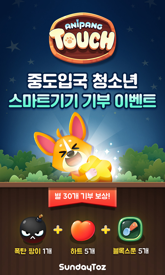 ¼±µ¥ÀÌÅäÁî´Â ÀÚ»ç ¸ð¹ÙÀÏ ÆÛÁñ °ÔÀÓ '¾Ö´ÏÆÎ ÅÍÄ¡' ÀÌ¿ëÀÚµé°ú ÇÔ²² ÁßµµÀÔ±¹ û¼Ò³â Áö¿øÀ» À§ÇÑ »çȸ°øÇå À̺¥Æ®¸¦ ÁøÇàÇÑ´Ù°í 7ÀÏ ¹àÇû´Ù.