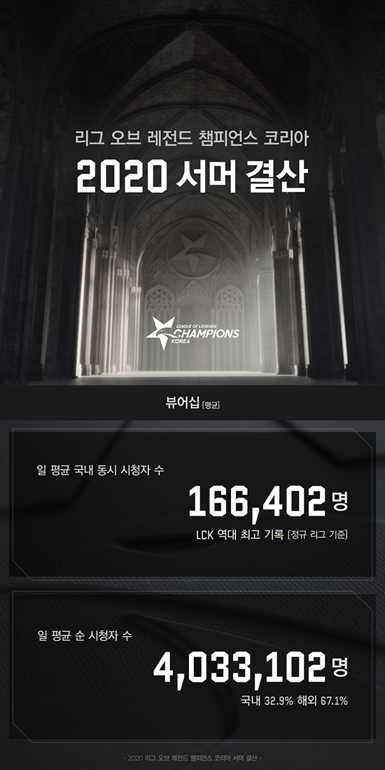 ¶óÀ̾ù °ÔÀÓÁî°¡ 6¿ù 17ÀϺÎÅÍ 9¿ù 9ÀϱîÁö ÁøÇàµÈ ¡®2020 ¿ì¸®ÀºÇà LoL èÇǾ𽺠ÄÚ¸®¾Æ(ÀÌÇÏ LCK) ¼¸Ó¡¯ÀÇ ÀÏ Æò±Õ ±¹³» µ¿½Ã ½ÃûÀÚ ¼ö°¡ Å« ÆøÀ¸·Î Áõ°¡ÇÏ¸ç ¿ª´ë ÃÖ°íÄ¡¸¦ ±â·ÏÇß´Ù°í ¹àÇû´Ù.