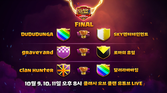 ÃÑ »ó±Ý 1¾ï 5õ¸¸¿ø ±Ô¸ðÀÇ ÄÚ¸®¾Æ èÇǾð½Ê 2´Â 3ÆÇ 2¼±½ÂÁ¦·Î ÃÖ°íÀÇ Å¬·£À» °áÁ¤ÇÑ´Ù. °¢ ¸®±×ÀÇ °á½ÂÀüÀº Ŭ·¡½Ã ¿Àºê Ŭ·£ °ø½Ä À¯Æ©ºê ä³Î¿¡¼ ½Ãû °¡´ÉÇϸç, °æ±âÀÇ ½Ç½Ã°£ Áß°è´Â Àαâ Å©¸®¿¡ÀÌÅÍÀÎ ¡®ÀáÆÃ TV¡¯¿Í ¡®ºñ¿¥ TV¡¯, ¡®ºü´ÙCOC¡¯°¡ ¸Ã¾Ò´Ù.