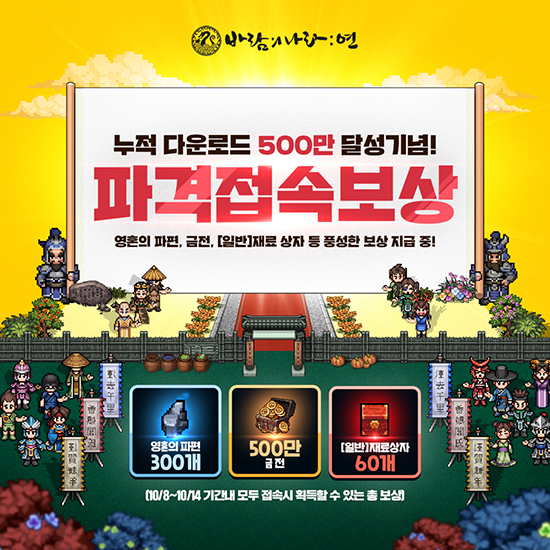 ³Ø½¼Àº ¸ð¹ÙÀϰÔÀÓ °³¹ß»ç ½´ÆÛŰú °øµ¿°³¹ßÇÑ ¸ð¹ÙÀÏ MMORPG ¡®¹Ù¶÷Àdzª¶ó: ¿¬¡¯ 500¸¸ ´©Àû ´Ù¿î·Îµå µ¹ÆÄ¸¦ ±â³äÇØ 8ÀϺÎÅÍ °¨»ç À̺¥Æ®¸¦ ÁøÇàÇÑ´Ù.