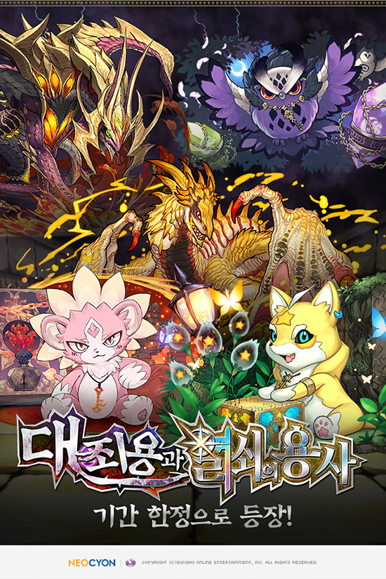 À̹ø µîÀåÀ» ÅëÇØ 11¿ù 9ÀÏ ¿ÀÀü 10½Ã±îÁö ¡®È­¿°ÀÇ ¿­¼è °è½ÂÀÚ ±Û·¹¿Â¡¯ µî ÃÑ 12Á¾ÀÇ ¡®´ëÁË¿ë°ú ¿­¼èÀÇ ¿ë»ç¡¯ ½Ã¸®Áî ¸ó½ºÅ͵éÀ» Ưº° ·¹¾î ¿¡±×¿¡¼­ ±â°£ ÇÑÁ¤À¸·Î ¸¸³¯ ¼ö ÀÖ´Ù. À̺¥Æ® ±â°£ µ¿¾È °ÔÀÓ¿¡ ·Î±×ÀÎÇϸé 10¿ù 12ÀϺÎÅÍ 10¿ù 26ÀϱîÁö¿Í 10¿ù 26ÀϺÎÅÍ 11¿ù 9ÀϱîÁö, ÃÑ 2ȸ¿¡ °ÉÃÄ ¡®°³ÃÖ±â³ä! ´ëÁË¿ë°ú ¿­¼èÀÇ ¿ë»ç ¿¡±×¡¯ 20ȸºÐÀ» ÁõÁ¤ÇÑ´Ù.
