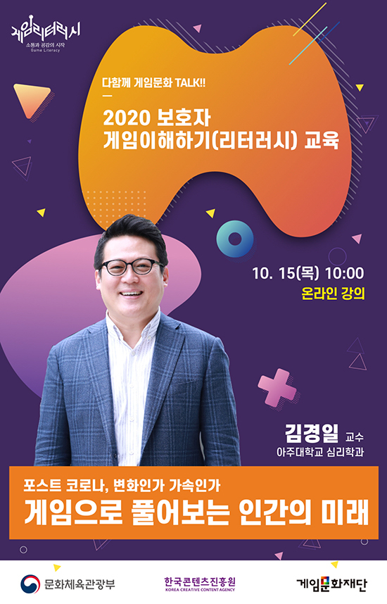 ¹®ÈüÀ°°ü±¤ºÎ, Çѱ¹ÄÜÅÙÃ÷ÁøÈï¿ø, (Àç)°ÔÀÓ¹®ÈÀç´ÜÀÌ ¡®2020 º¸È£ÀÚ °ÔÀÓÀÌÇØÇϱâ(¸®ÅÍ·¯½Ã) ±³À° - ´ÙÇÔ²² °ÔÀÓ¹®È TALK!!¡¯ °¿¬À» ¿À´Â 10¿ù 15ÀÏ(¸ñ) ¿ÀÀü 10½ÃºÎÅÍ ¿Â¶óÀÎÀ» ÅëÇØ ÁøÇàÇÑ´Ù°í ¹àÇû´Ù.