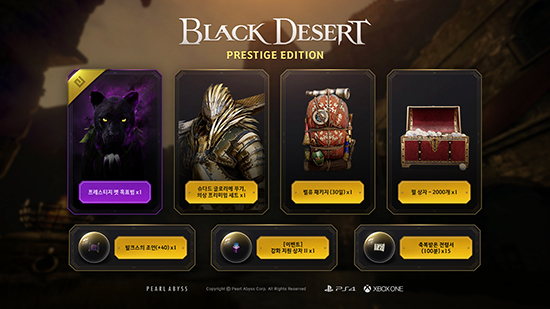 ¿¡ÀÌÄ¡Åõ ÀÎÅÍ·ºÆ¼ºê(H2 INTERACTIVE)´Â ÆÞ¾îºñ½º(Pearl Abyss Corp.)ÀÇ ¿ÀÇ ¿ùµå ¾×¼Ç MMORPG ¡®°ËÀº»ç¸· ÇÁ·¹½ºÆ¼Áö ¿¡µð¼Ç(BLACK DESERT PRESTIGE EDITION)¡¯ PS4 ¹× Xbox One ¸®Å×ÀÏ ÆÐŰÁö¸¦ ¿À´Â 11¿ù 6ÀÏ ¼ÒºñÀÚ°¡°Ý 35,000¿ø¿¡ Á¤½Ä Ãâ½ÃÇϸç, ¿À´Ã(10¿ù14ÀÏ)ºÎÅÍ ¿¹¾à ÆÇ¸Å¸¦ ½ÃÀÛÇÑ´Ù°í ¹àÇû´Ù.