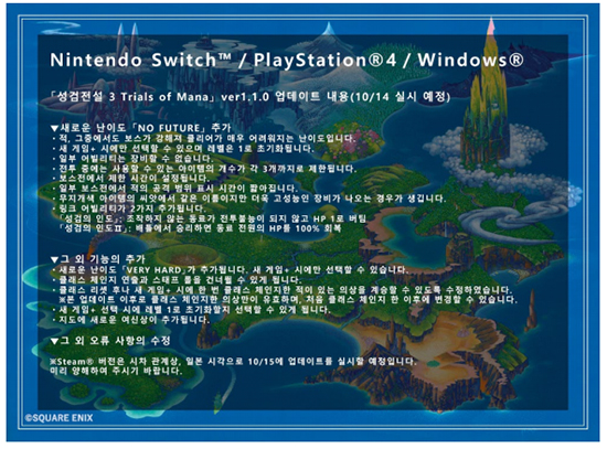 SQUARE ENIX CO., LTD. (SQUARE ENIX)´Â Nintendo Switch¢â/PlayStation¢ç4/Windows¢ç ·Î ¹ß¸Å ÁßÀÎ ¡¸¼º°ËÀü¼³ 3 TRIALS of MANA¡¹¿¡ ´ëÇÏ¿© °¡±î¿î ½ÃÀÏ ³»¿¡ ¾÷µ¥ÀÌÆ®¸¦ ½Ç½ÃÇÒ ¿¹Á¤ÀÓÀ» ¹ßÇ¥ÇÏ¿´´Ù.