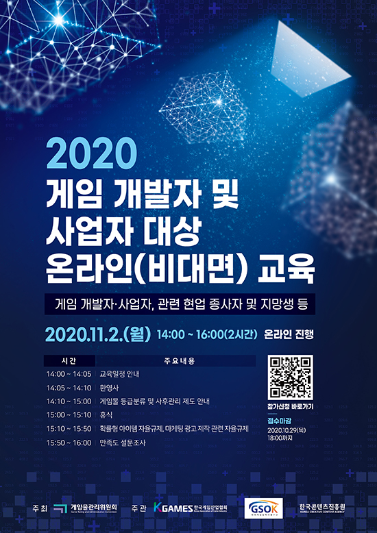 °ÔÀÓ¹°°ü¸®À§¿øÈ¸(°ÔÀÓÀ§)´Â ³»´Þ 2ÀÏ(¿ù) ¿ÀÈÄ 2½ÃºÎÅÍ °ÔÀÓ°ü·Ã °³¹ßÀÚ¿Í Á¾»çÀÚ, °ÔÀÓ°³¹ß Áö¸Á»ý µîÀ» ´ë»óÀ¸·Î ±³À°À» ½Ç½ÃÇÑ´Ù. ±³À°Àº Äڷγª 19 ¿¹¹æÀ» À§ÇØ ½Ç½Ã°£ ºñ´ë¸é È»ó±³À°À¸·Î Á¦°øµÈ´Ù.