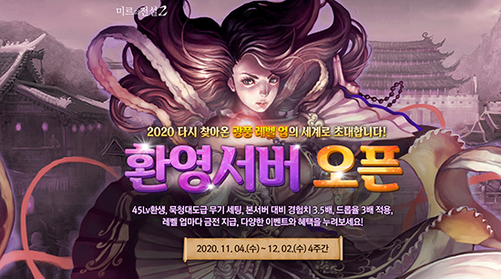 ¡®È¯¿µ¼¹ö¡¯´Â ¸ðµç ·¹º§ÀÇ ÀÌ¿ëÀÚ°¡ Âü¿©ÇÒ ¼ö ÀÖÀ¸¸ç ±âº» 45·¹º§·Î ½ÃÀÛ, °æÇèÄ¡ ¹× ¾ÆÀÌÅÛ È¹µæ·ü ¸ðµÎ º» ¼¹öÀÇ 3¹è ÀÌ»óÀ¸·Î Àû¿ëµÈ´Ù. À̺¥Æ® Á¾·á ÈÄ¿¡´Â ȯ¿µ¼¹ö¿¡¼ ȹµæÇÑ °æÇèÄ¡ÀÇ 60%¸¦ ±âÁ¸ ¼¹ö·Î ÀÌÀüµµ °¡´ÉÇÏ´Ù.