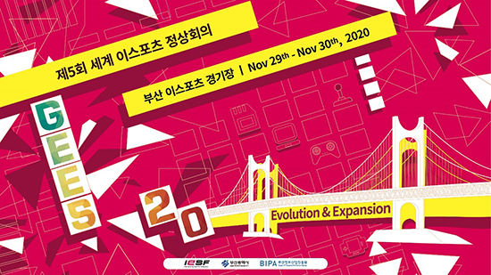 ±¹Á¦e½ºÆ÷Ã÷¿¬¸Í (IESF)°ú (Àç)ºÎ»êÁ¤º¸»ê¾÷ÁøÈï¿øÀÌ °øµ¿ ÁÖÃÖ¡¤ÁÖ°üÇϰí, ºÎ»ê½Ã°¡ ÈÄ¿øÇÏ´Â ¡®Á¦5ȸ ¼¼°è e½ºÆ÷Ã÷ Á¤»óȸÀÇ(GEES)¡¯°¡ 11¿ù 29ÀϺÎÅÍ 30ÀϱîÁö ºÎ»ê À̽ºÆ÷Ã÷ °æ±âÀå ¿¡¼ ÁøÇàµÈ´Ù.