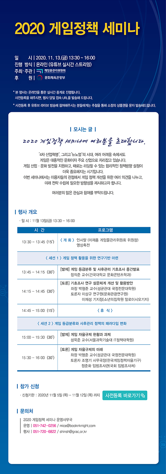 [°ÔÀÓ¹°°ü¸®À§¿øÈ¸] ¡¸2020 °ÔÀÓÁ¤Ã¥ ¼¼¹Ì³ª¡¹ °³ÃÖ |