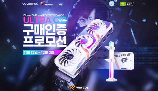 ¿þÀÌÄÚ½º´Â 11¿ù 12ÀϺÎÅÍ ¡°Ä÷¯Ç® Å×Å©³î·ÎÁö(Colorful Technology Co. LTD)¡±»çÀÇ ½ÅÁ¦Ç°, ¡®Colorful iGame GeForce RTX 3070 ULTRA OC White¡¯ Ãâ½Ã¸¦ ±â³äÇØ ±¸¸Å °í°´À» ´ë»óÀ¸·Î ¡®Ä÷¯Ç® RGB ±×·¡ÇÈÄ«µå ÁöÁö´ë(ÈÀÌÆ®)¡¯¸¦ ÁõÁ¤ÇÏ´Â ÇÁ·Î¸ð¼ÇÀ» ½Ç½ÃÇÑ´Ù.