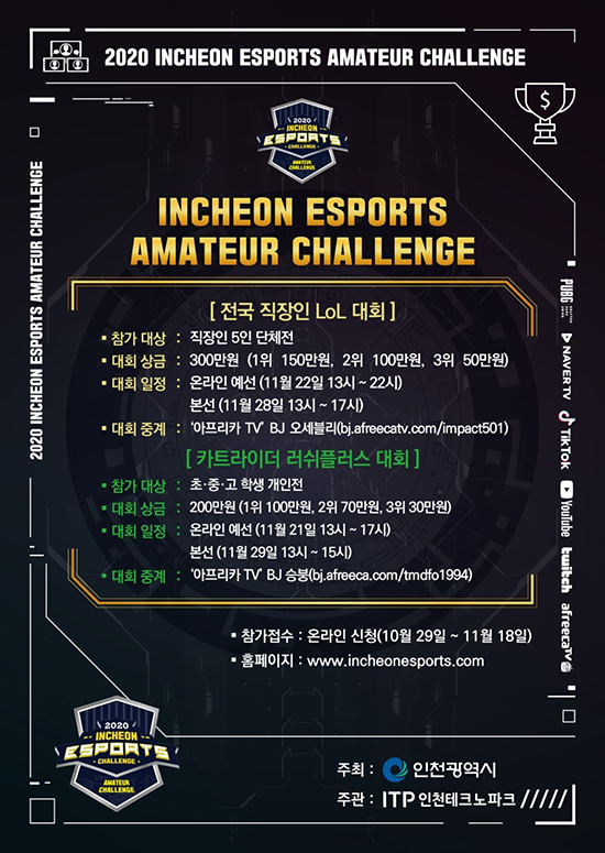ÀÎõÅ×Å©³ëÆÄÅ©(ÀÌÇÏ : ÀÎõTP)´Â ÀÎõ±¤¿ª½Ã°¡ ÁÖÃÖÇϰí ÀÎõTP°¡ ÁÖ°üÇÏ´Â '2020 ÀÎõ e½ºÆ÷Ã÷ 縰Áö(2020 INCHEON ESPORTS CHALLENGE)'ÀÇ ¾Æ¸¶Ãß¾î ´ëȸ ¡®ÀÎõ e½ºÆ÷Ã÷ ¾Æ¸¶Ãß¾î 縰Áö(INCHEON ESPORTS AMATEUR CHALLENGE)¡¯ÀÇ ¿¹¼±ÀüÀ» ½Ç½ÃÇÑ´Ù°í 20ÀÏ ¹àÇû´Ù.