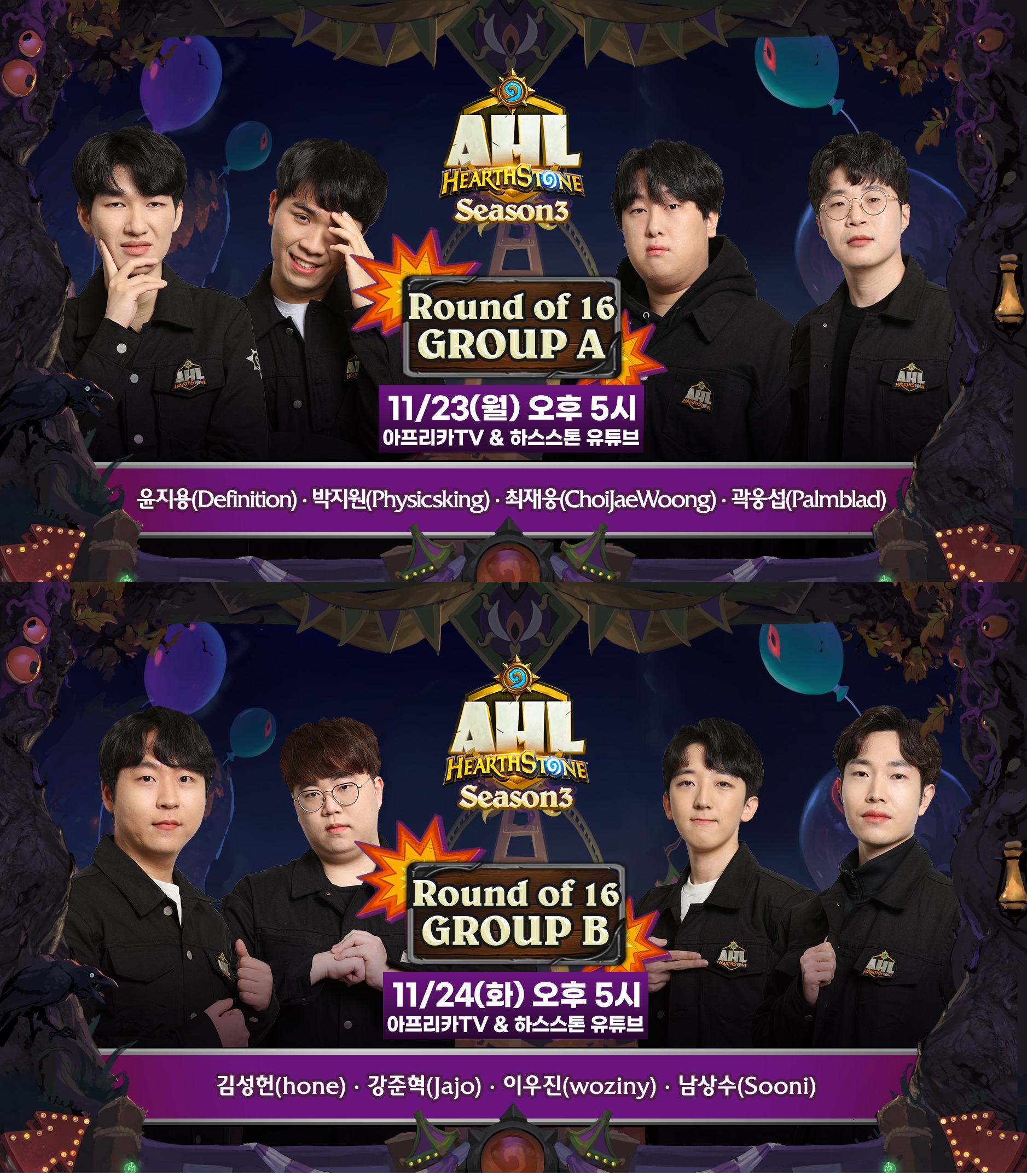 ¾ÆÇÁ¸®Ä«TV´Â 23ÀÏ(¿ù)°ú 24ÀÏ(È) ¾çÀϰ£ ¼¿ï ´ëÄ¡µ¿ ¡®¾ÆÇÁ¸®Ä« ÇÁ¸¯¾÷ ½ºÆ©µð¿À¡¯¿¡¼ 'AHL(Afreecatv Hearthstone League, ÀÌÇÏ AHL) ½ÃÁð3¡¯ 16° 1ÁÖÂ÷ °æ±â¸¦ ÁøÇàÇÑ´Ù°í ¹àÇû´Ù.