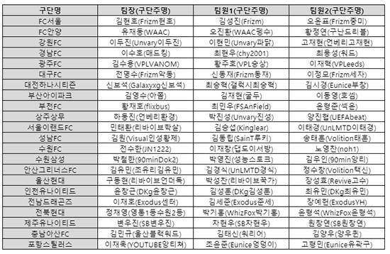 Çѱ¹e½ºÆ÷Ã÷Çùȸ°¡ Çѱ¹ÇÁ·ÎÃ౸¿¬¸Í°ú °øµ¿À¸·Î ÁÖÃÖÇϰí, ¾ÆÇÁ¸®Ä«TV°¡ ÁÖ°üÇÏ´Â ¡®eK¸®±× 2020¡¯Àº Áö³ 10¿ù ¸»ºÎÅÍ ÇÑ ´Þ °£ Àü±¹ 22°³ K¸®±× ±¸´ÜÀ» ´ëÇ¥ÇÏ´Â ´ëÇ¥ÆÀÀ» ¼±¹ßÇß´Ù. ±¸´Ü ´ëÇ¥ ¼±¹ßÀü¿¡´Â Àü±¹¿¡¼ ¾à 600°³ ÆÀÀÌ Âü°¡½ÅûÀ» Çϸç, eK¸®±×¿¡ ´ëÇÑ ¶ß°Å¿î ¿±â¸¦ º¸¿©ÁÖ¾ú´Ù. ƯÈ÷, ÀüºÏÇö´ë¿Í FC¼¿ïÀº °¢°¢ 64ÆÀ, 61ÆÀÀÌ ½ÅûÇÏ¸é¼ 60´ë 1ÀÌ ³Ñ´Â °æÀï·üÀ» ±â·ÏÇß´Ù.