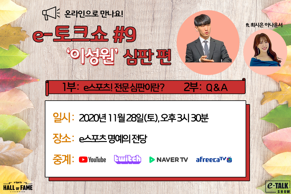 Çѱ¹e½ºÆ÷Ã÷Çùȸ°¡ ¿À´Â 28ÀÏ(Åä) ¿ÀÈÄ 3½Ã 30ºÐºÎÅÍ e½ºÆ÷Ã÷ ¸í¿¹ÀÇ Àü´ç(¼¿ï ¸¶Æ÷, esportshistory.kr)¿¡¼ 9¹øÂ° ¡®e-ÅäÅ©¼î¡¯¸¦ ÁøÇàÇÑ´Ù.