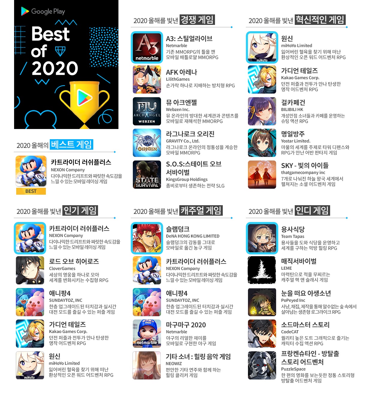 ±¸±ÛÇ÷¹À̰¡ 1ÀÏ ±¸±Û Ç÷¹À̽ºÅä¾î¸¦ ÅëÇØ ¡®2020 ¿ÃÇØÀÇ º£½ºÆ® ¾Û¡¯°ú ¡®2020 ¿ÃÇØÀÇ º£½ºÆ® °ÔÀÓ¡¯À» ºñ·ÔÇÑ 9°³ ºÎ¹®º° ÃÖ¿ì¼ö»ó ¼ö»óÀÛÀ» ¹ßÇ¥Çß´Ù.