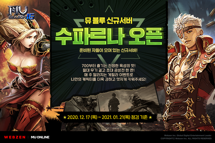 À¥Á¨Àº ¾îÁ¦(12¿ù 17ÀÏ)ºÎÅÍ ³»³â 1¿ù 21ÀÏ(¸ñ) Á¤±â Á¡°Ë Àü±îÁö ½Å±Ô ¼¹ö ¡®¼öÆÄ¸£³ª¡¯ ¼¹ö¿¡ Á¢¼ÓÇÑ È¸¿ø ÇÑÁ¤À¸·Î ¡®·¹º§ ´Þ¼º º¸»ó¡¯, ¡®°Ô¸±¶ó ÇýÅᯠµî ´Ù¾çÇÑ À̺¥Æ®¸¦ ÁøÇà ÁßÀÌ´Ù.