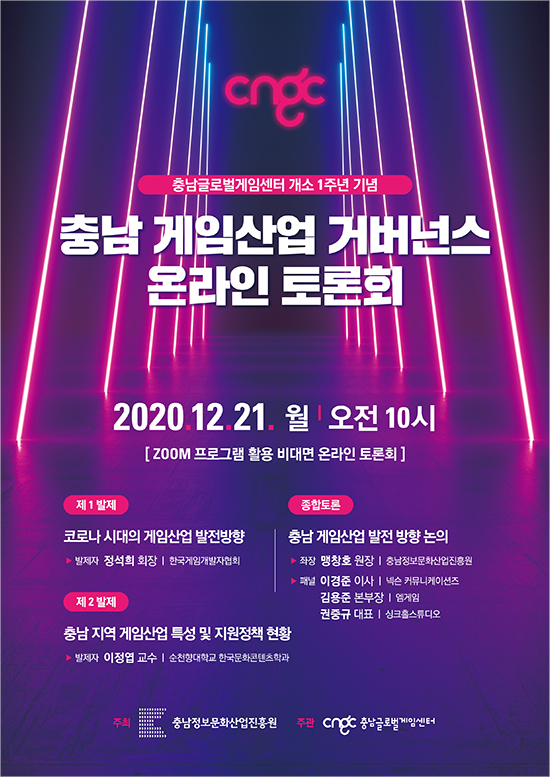 Ãæ³²Á¤º¸¹®È»ê¾÷ÁøÈï¿ø(ÁøÈï¿ø)Àº Ãæ³²±Û·Î¹ú°ÔÀÓ¼¾ÅÍ °³¼Ò 1ÁÖ³âÀ» ¸Â¾Æ 21ÀÏ ¿ÀÀü ¡®Æ÷½ºÆ® Äڷγª½Ã´ë Ãæ³²°ÔÀÓ»ê¾÷ ¹ßÀüÀü·« Áö¿ª °Å¹ö³Í½º ¿Â¶óÀÎ °£´ãȸ¡¯¸¦ °³ÃÖÇß´Ù.