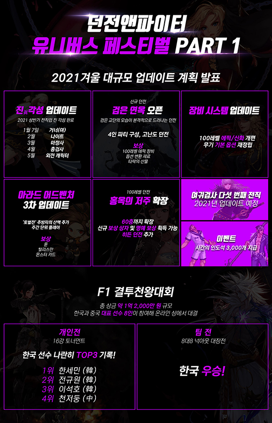 ³Ø½¼Àº Àα⠿¶óÀÎ ¾×¼Ç°ÔÀÓ ¡®´øÀü¾ØÆÄÀÌÅÍ(ÀÌÇÏ ´øÆÄ)¡¯ÀÇ ¿Â¶óÀÎ À¯Àú ÃàÁ¦ ¡®´øÀü¾ØÆÄÀÌÅÍ À¯´Ï¹ö½º Æä½ºÆ¼¹ú¡¯ Part1¿¡¼ °Ü¿ï ´ë±Ô¸ð ¾÷µ¥ÀÌÆ® °èȹÀ» ¹ßÇ¥Çß´Ù°í 21ÀÏ ¹àÇû´Ù.