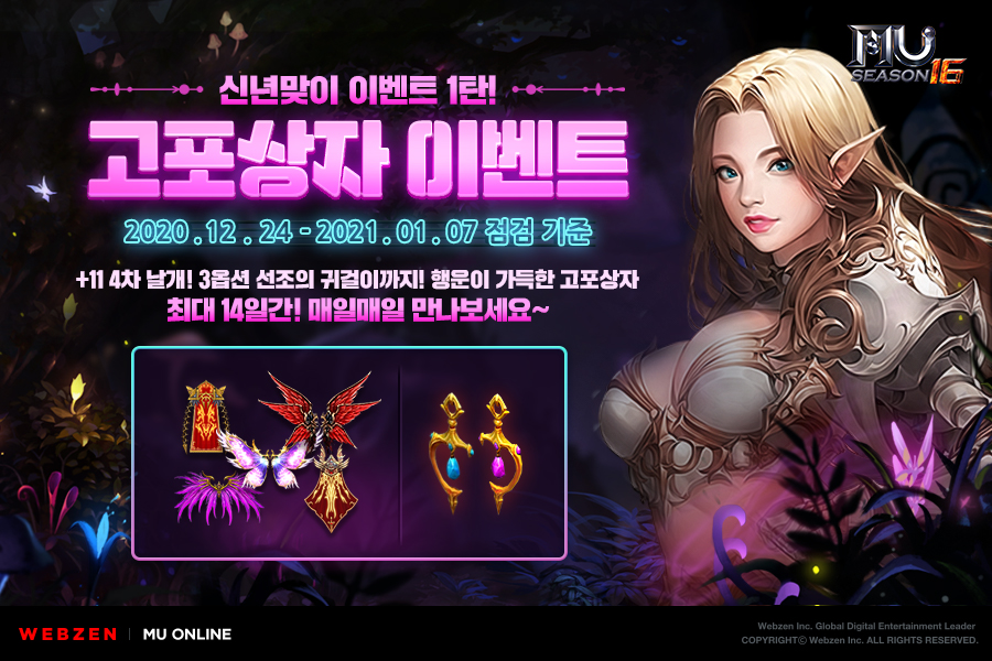 À¥Á¨Àº ¿À´Ã(12¿ù 24ÀÏ)ºÎÅÍ ³»³â 1¿ù 7ÀÏ(¸ñ) Á¤±â Á¡°Ë Àü±îÁö ¾à 2ÁÖ µ¿¾È ¡®+11 4Â÷ ³¯°³¡¯ µî °í±Þ ¾ÆÀÌÅÛÀ» Áö±ÞÇÏ´Â ¡®°íÆ÷»óÀÚ 3Á¾ À̺¥Æ®¡¯¸¦ ½ÃÀÛÇÑ´Ù.