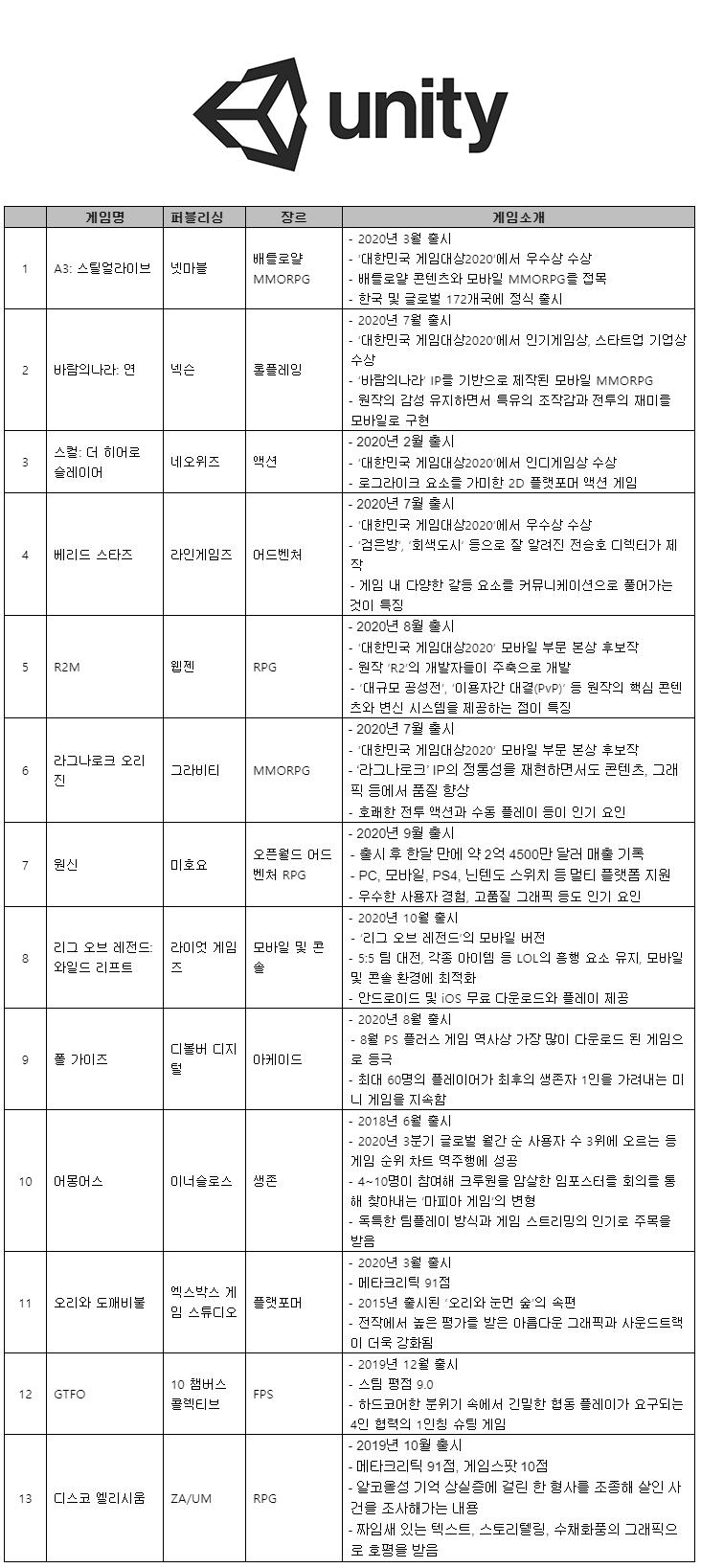 [À¯´ÏƼ] 2020³âÀ» ºû³½ À¯´ÏƼ ±â¹Ý °ÔÀÓ ´ëÀÛ |