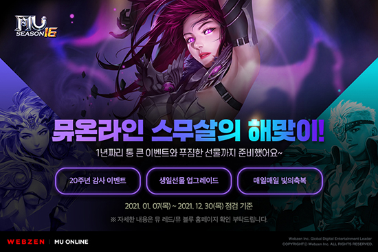À¥Á¨ÀÌ PC MMORPG ¡®¹Â ¿Â¶óÀΡ¯ÀÌ ¿ÃÇØ 20ÁÖ³âÀ» ¸Â¾Æ ȸ¿øµéÀ» À§ÇØ ¡®°¨»ç À̺¥Æ®¡¯¿Í ¡®½Å³â¸ÂÀÌ À̺¥Æ® 2ꡝÀ» ½Ç½ÃÇÑ´Ù.