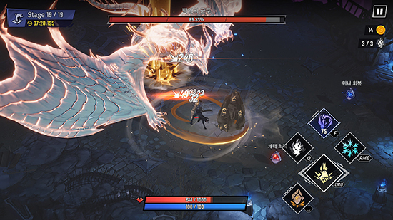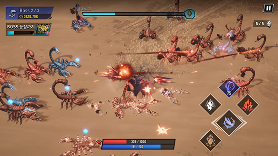 ÀüÅõ´Â ´ë½Ã¡¤ÀϹݰø°Ý¡¤Æ¯¼ö°ø°Ý ¼¼ °¡Áö ¹öư¸¸À» Ȱ¿ëÇØ °£´ÜÇϸ鼵µ ¼¼¹ÐÇÏ°Ô ÇÒ ¼ö ÀÖ´Ù. ÀÔ¹®Àº ½±°í, ¼÷·ÃÀº ¾î·Á¿î ÇüÅ´Ù. À¯Àú°¡ ¼±ÅÃÇÑ ¹«±â¿Í ¹öÇÁ¿¡ µû¶ó ¸ôÀÌ»ç³É¿¡ ÀûÇÕÇÑ ÀüÅõ¸¦ ÆîÄ¡°Å³ª ÇÑ ¹æ¿¡ Àû Çϳª¸¦ óġÇÒ ¼ö ÀÖ´Â µî Àü·«ÀûÀÎ ÀüÅõ¸¦ ¼±º¸ÀδÙ.